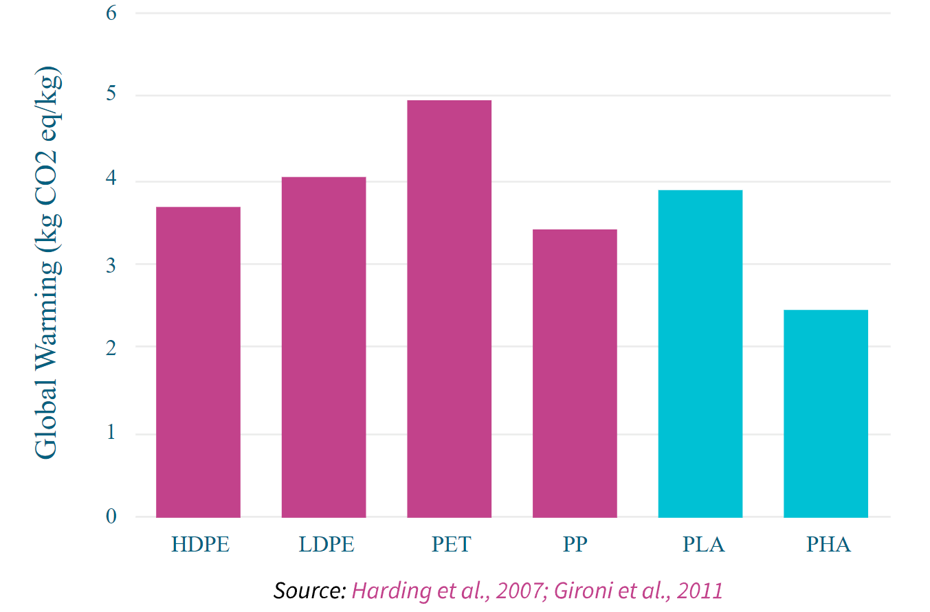 Le PHA redéfinit la durabilité. La production de plastique est l'une des principales sources d'émissions de gaz à effet de serre. Si d'autres alternatives biosourcées au plastique traditionnel peuvent être plus durables d'un point de vue climatique, le PHA (polyhydroxyalcanoate) présente des émissions de carbone et des besoins énergétiques nettement inférieurs à ceux de tous les autres polymères biosourcés. Il constitue donc une option potentiellement intéressante pour réduire l'impact environnemental de la production de plastique.
